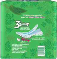 The pads feature a longer design, providing more coverage and protection. This extra length ensures that the pad stays in place and covers a larger area, reducing the risk of leaks. The longer design is particularly beneficial for overnight use, offering full protection while you sleep. It also provides additional coverage for those with a heavier flow, giving you reassurance and added security during the days with a heavier flow.