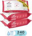 MYLO Baby Gentle Baby Wipes with 98% Pure Water, Organic Coconut Oil and Neem, No Lid (240 Wipes)