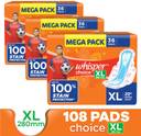 Whisper CHOICE XL, UPTO 100% STAIN PROTECTION ALL DAY Sanitary Pad (Pack of 36)