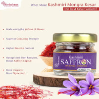 Elevate your cuisine with Herbal max Kashmiri Saffron. Its natural deep-red hue enhances visual appeal, while its aroma and flavor elevate your dishes. Whether biryani or kesar pista kulfi, this saffron is your secret to culinary success. Experience the difference with the unmatched quality of Herbal max Kashmiri Saffron.