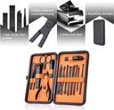 Manicure & Pedicure Set Small Easy to carry. Manicure Set - High Quality Stainless Steel, Durable, Corrosion-resistant, Sharp, Hard And Durable. Mini size, very portable, easy to carry when you go to travel. Small size of grooming kits makes it portable and lightweight, which is easy to carry, great for travel and home. The beautiful case is a great gift for yourself, families and friends. Hand Care Set for Women Hand care set including Large Nail Clipper Nail Clipper Cuticle Nipper Slanted Edge Nail Clipper Nail File V-Shaped Cuticle Trimmer Facial Treatment for Women Face care set including Eyebrow Scissors Eyebrow Tweezers Blackhead & Acne needle Ear Pick Nose Hair Scissors Manicure Pedicure Set for Women Foot Care Set for Women Foot care set including Cuticle Pusher and Nail Cleaner Scraping Knife Flat Callus Remover Oblique Callus Remover Curved Knife The Manicuring set with high strength, toughness, and abrasion resistance; Professional manicure kit is a perfect gift for yourself, families and friends; Useful set, protect your nail health, make you tidy and clean.