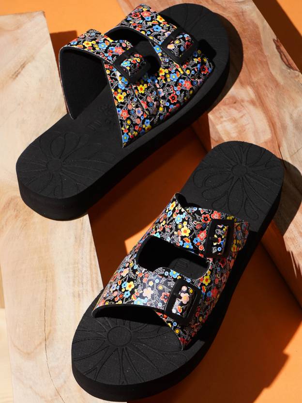 Rasambh Women Comfortable Stylish and Trending Colorful Printed Flip Flops Slides (Black , 6)