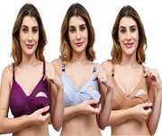CSU Women's cotton maternity/nursing bra pack of 3 Women Maternity/Nursing Non Padded Bra (Multicolor)