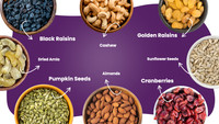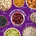 Featuring a mixture of black raisins, pumpkin seeds, dried cranberries, sunflower seeds, and cashews, this dry fruits combo offers a diverse range of flavours and textures. The blend provides a satisfying crunch from the seeds and nuts, balanced with the sweet, chewy texture of the cranberries and raisins. This combination makes it a versatile snack option, ideal for enjoying on its own or adding to various dishes.