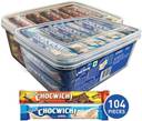 A:This delicious combo has 104 bars in total. 52 bars each of LuvIt Chocwich and LuvIt Chocwich White