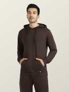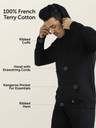Blending in comfort and functionality, our Cruze collection is crafted from 100% French terry cotton that feels buttery-soft and ultra-breathable. Enhanced with our IntelliEaze technology for a luxuriously light appeal, this capsule of moisture-absorbent separates is made for the man on the move. Whether you're sipping on coffee at your neighbourhood cafe or moving about town, this cozy hoodie will let you do it all in effortless ease and style. Treated with a bio-wash to enhance softness with every wear, this regular-fit design features a kangaroo pocket to keep your essentials handy along with a drawstring detail to adjust the hood. The tag-less hoodie comes designed with ribbed detailing at the neck, cuffs and hem for a neat finish.