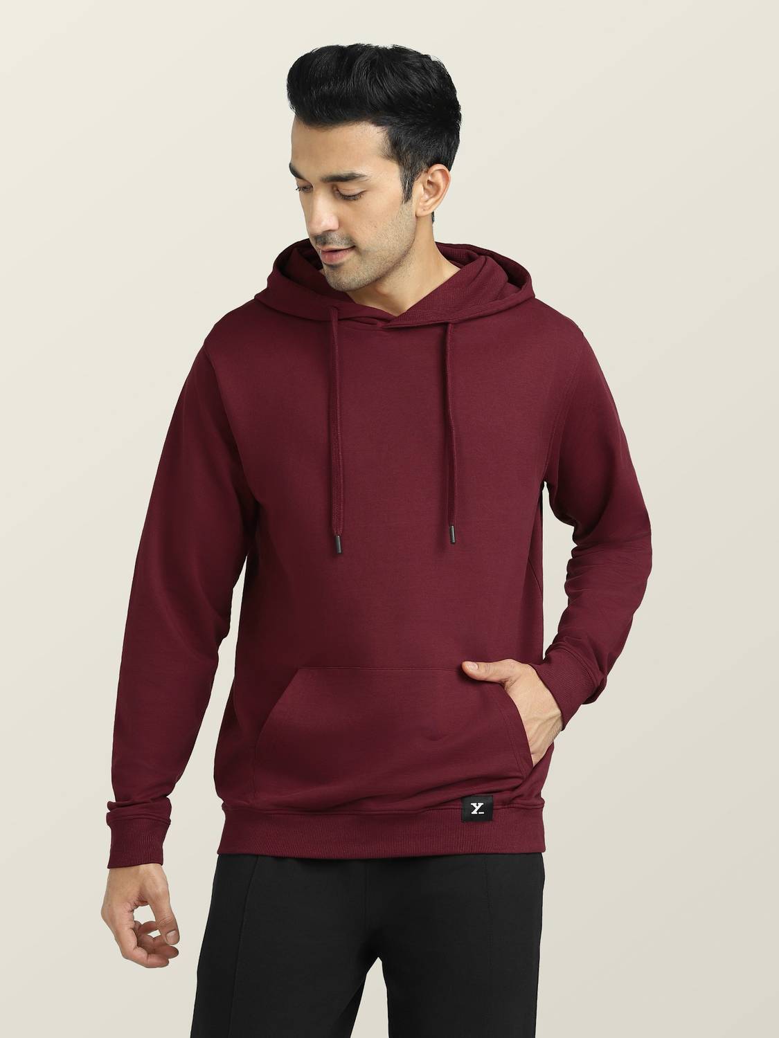 Blending in comfort and functionality, our Cruze collection is crafted from 100% French terry cotton that feels buttery-soft and ultra-breathable. Enhanced with our IntelliEaze technology for a luxuriously light appeal, this capsule of moisture-absorbent separates is made for the man on the move. Whether you're sipping on coffee at your neighbourhood cafe or moving about town, this cozy hoodie will let you do it all in effortless ease and style. Treated with a bio-wash to enhance softness with every wear, this regular-fit design features a kangaroo pocket to keep your essentials handy along with a drawstring detail to adjust the hood. The tag-less hoodie comes designed with ribbed detailing at the neck, cuffs and hem for a neat finish.