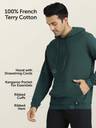 Blending in comfort and functionality, our Cruze collection is crafted from 100% French terry cotton that feels buttery-soft and ultra-breathable. Enhanced with our IntelliEaze technology for a luxuriously light appeal, this capsule of moisture-absorbent separates is made for the man on the move. Whether you're sipping on coffee at your neighbourhood cafe or moving about town, this cozy hoodie will let you do it all in effortless ease and style. Treated with a bio-wash to enhance softness with every wear, this regular-fit design features a kangaroo pocket to keep your essentials handy along with a drawstring detail to adjust the hood. The tag-less hoodie comes designed with ribbed detailing at the neck, cuffs and hem for a neat finish.