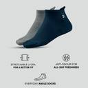 Socks are an essential part of your everyday attire, whether you are dressing casually for a day out with your friends or preparing for an important office meeting. Crafted from a premium cotton blend, these stretchable socks offer a luxuriously soft and breathable feel that keeps you comfortable all day long. Featuring advanced anti-microbial properties and a carefully engineered mesh top, our socks guarantee optimal airflow and breathability, effectively combating sweat and odour. Each step is a luxurious experience, thanks to the soft cushioned heels and the tab support minimizes blisters and prevents the socks from sliding down the ankle. Designed in versatile colors, our socks seamlessly integrate into your wardrobe, enabling you to confidently put your best foot forward.