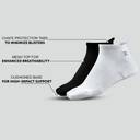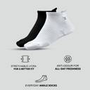 Socks are an essential part of your everyday attire, whether you are dressing casually for a day out with your friends or preparing for an important office meeting. Crafted from a premium cotton blend, these stretchable socks offer a luxuriously soft and breathable feel that keeps you comfortable all day long. Featuring advanced anti-microbial properties and a carefully engineered mesh top, our socks guarantee optimal airflow and breathability, effectively combating sweat and odour. Each step is a luxurious experience, thanks to the soft cushioned heels and the tab support minimizes blisters and prevents the socks from sliding down the ankle. Designed in versatile colors, our socks seamlessly integrate into your wardrobe, enabling you to confidently put your best foot forward.