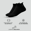 Socks are an essential part of your everyday attire, whether you are dressing casually for a day out with your friends or preparing for an important office meeting. Crafted from a premium cotton blend, these stretchable socks offer a luxuriously soft and breathable feel that keeps you comfortable all day long. Featuring advanced anti-microbial properties and a carefully engineered mesh top, our socks guarantee optimal airflow and breathability, effectively combating sweat and odour. Each step is a luxurious experience, thanks to the soft cushioned heels and the tab support minimizes blisters and prevents the socks from sliding down the ankle. Designed in versatile colors, our socks seamlessly integrate into your wardrobe, enabling you to confidently put your best foot forward.