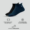 Socks are an essential part of your everyday attire, whether you are dressing casually for a day out with your friends or preparing for an important office meeting. Crafted from a premium cotton blend, these stretchable socks offer a luxuriously soft and breathable feel that keeps you comfortable all day long. Featuring advanced anti-microbial properties and a carefully engineered mesh top, our socks guarantee optimal airflow and breathability, effectively combating sweat and odour. Each step is a luxurious experience, thanks to the soft cushioned heels and the tab support minimizes blisters and prevents the socks from sliding down the ankle. Designed in versatile colors, our socks seamlessly integrate into your wardrobe, enabling you to confidently put your best foot forward.