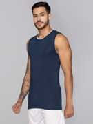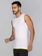 A blend of functionality and comfort, this Activo muscle tee is ideal for your workout wardrobe. We took the utterly smooth super combed cotton fabric and blended it with a bit of elastane for stretch and finished it with a FRESHON Silver, Anti-Bacterial finish to make a premium vest material that has a natural, luxe feel along with anti-odour resilience. The Activo range of vests features a round neck and contrast detailing on the neckline and hem for added appeal. Engineered for an easy stretch, this regular-fit vest moves with you while ensuring breathability and comfort.