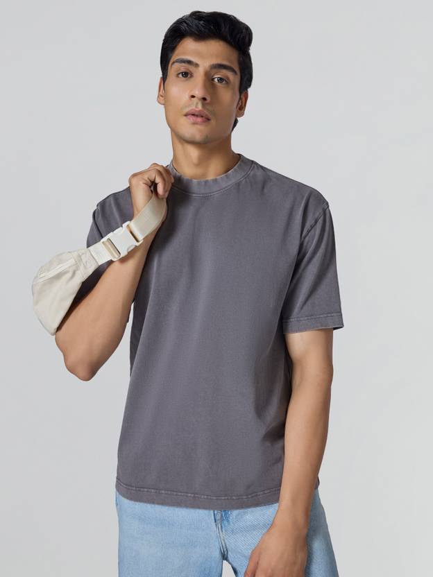 XYXX Men Solid Round Neck Cotton Blend Grey T-Shirt