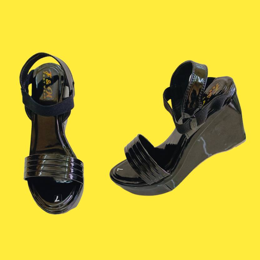 Women Wedges Sandal (Black , 3)