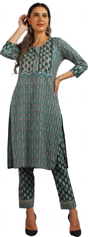 Women Kurta Pyjama Set Pure Cotton Printed Straight Kurta with Pant(Palazzo)