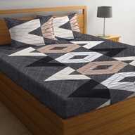 YaAkholic Reversible Cotton Double Bed Cover (Multicolor, 1 New Trend Fitted Cotton Double Bedsheet 2 Pillow Covers)