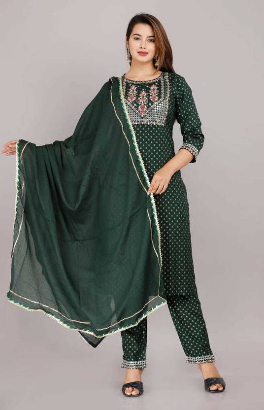 Women Viscose Rayon Kurta Pant Dupatta Set