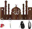 Yami Allah Shape Creative Art Work Key Holder Wood Key Holder (8 Hooks, Brown)