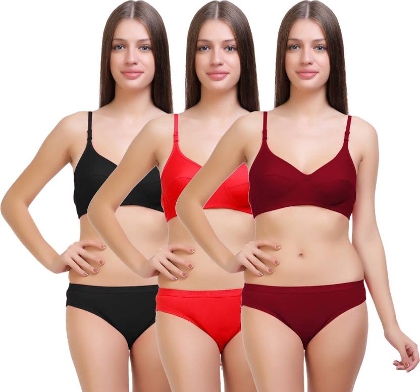 Yana Bra & Panty Set Solid Red, Maroon, Black Lingerie Set