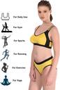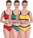 Combo pack of 3 sports bra & panty sets in stylish Red, Rama Green & Yellow colors, Premium cotton-rich stretchable fabric for maximum comfort, Wire-free, non-padded design for natural shape & support, Ideal for gym, yoga, running, sports & daily wear, Sweat absorbent, breathable & skin-friendly material