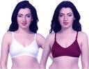 Yana Women Full Coverage Non Padded Bra (White, Maroon)