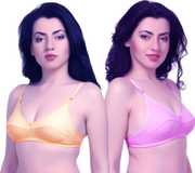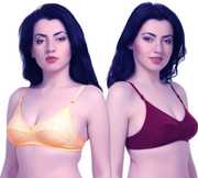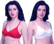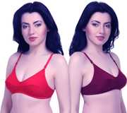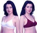 Yana Women Full Coverage Non Padded Bra (White, Maroon)