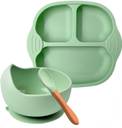YANCI Baby Feeding Bowl & Spoon Set, Silicone Suction Baby Bowl,Soft Spoon for Toddler - Silicone (Green)