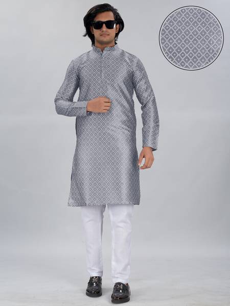 Shree Dutt Creation Men Embellished Straight Kurta (Grey)