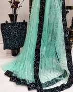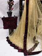 Zintargo Embellished Bollywood Net Saree (Cream)