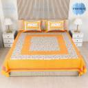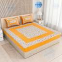 Pastels Cotton Double Flat 144 TC Jaipuri Prints Bedsheet (Pack of 1, Yellow)