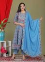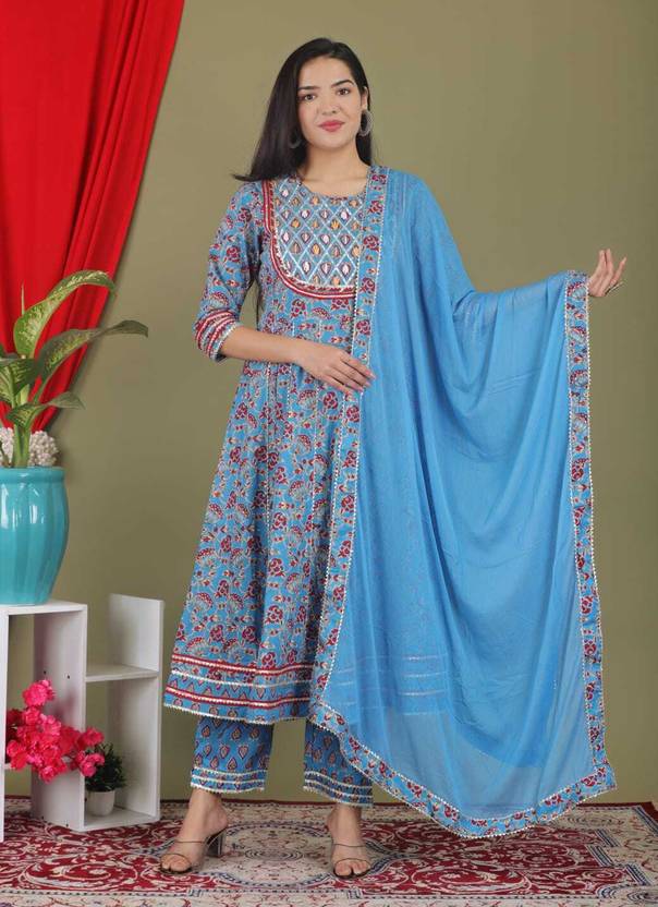 Floral Print Anarkali Kurta, Bottom & Dupatta Set