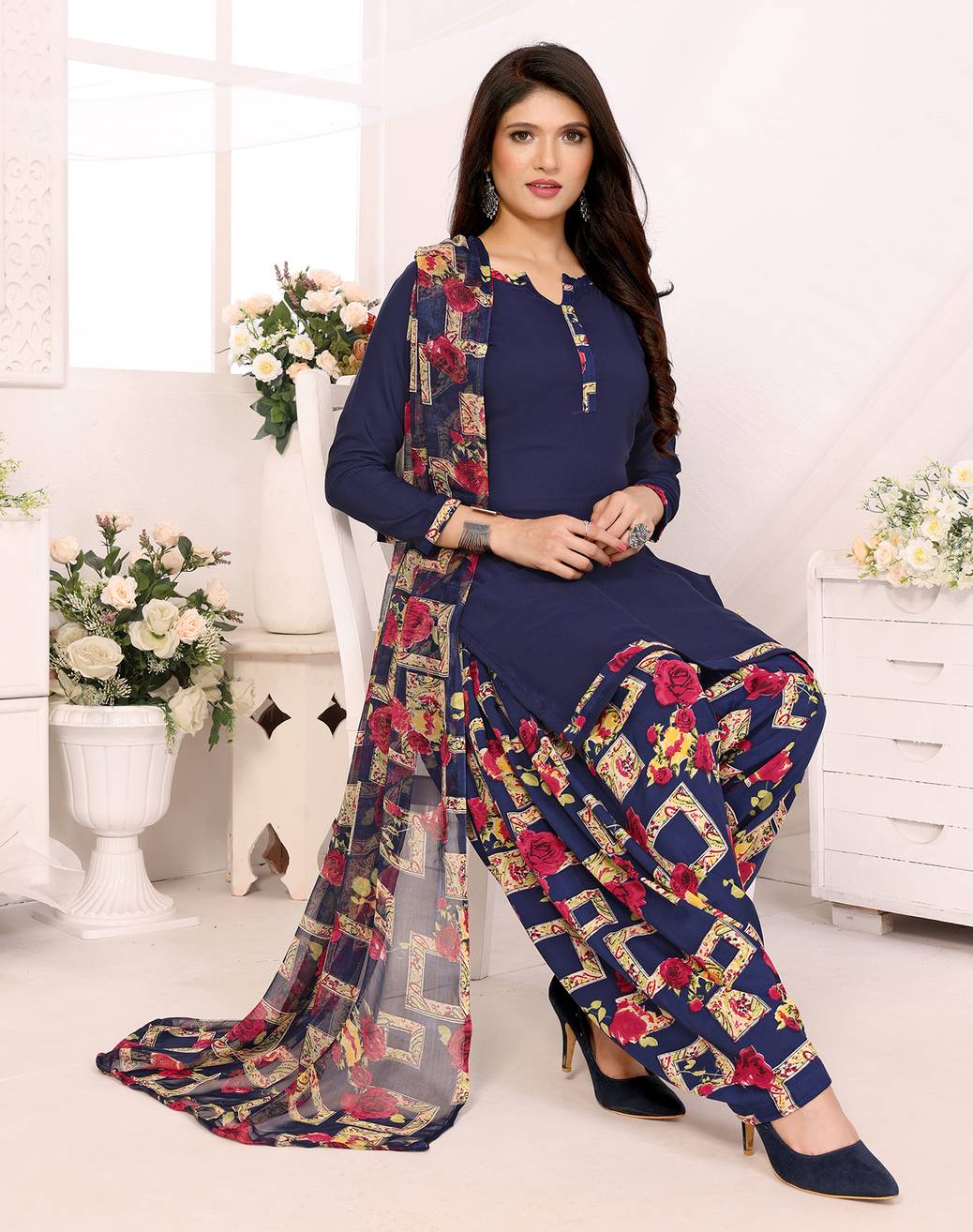 Womens Crepe Printed Unstiched Dress Material. Add style to your Daily Wear Collection with this Printed Dress material Salwar suit. 1 Unstitched Salwar, 1 Unstitched Top, 1 Dupatta.Top & Bottom Fabric : American Crepe, Dupatta Fabric : Martina You can use it for daily wear purpose it will give you immense comfort and fresh styling look.