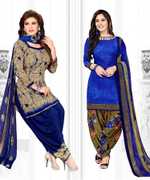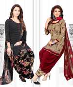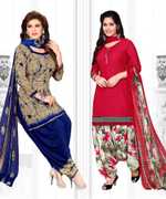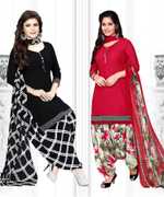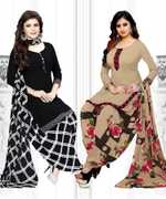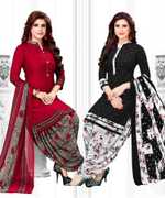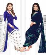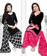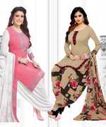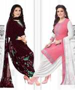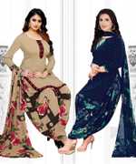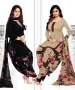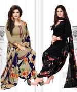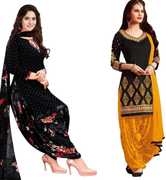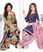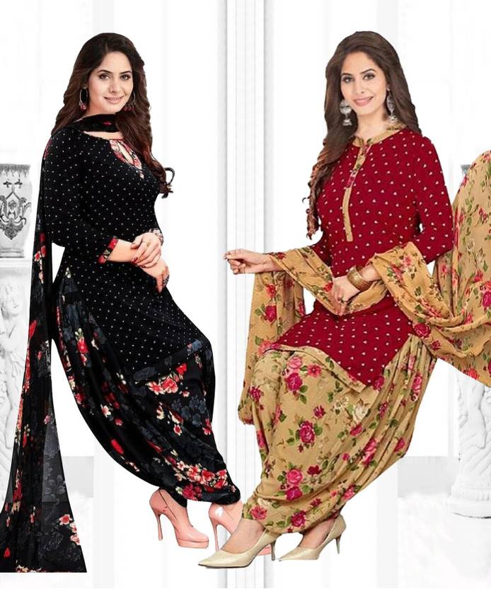 Unstitched Crepe Salwar Suit Material Floral Print, Geometric Print
