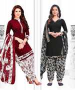 INITHI Crepe Floral Print, Geometric Print Salwar Suit Material