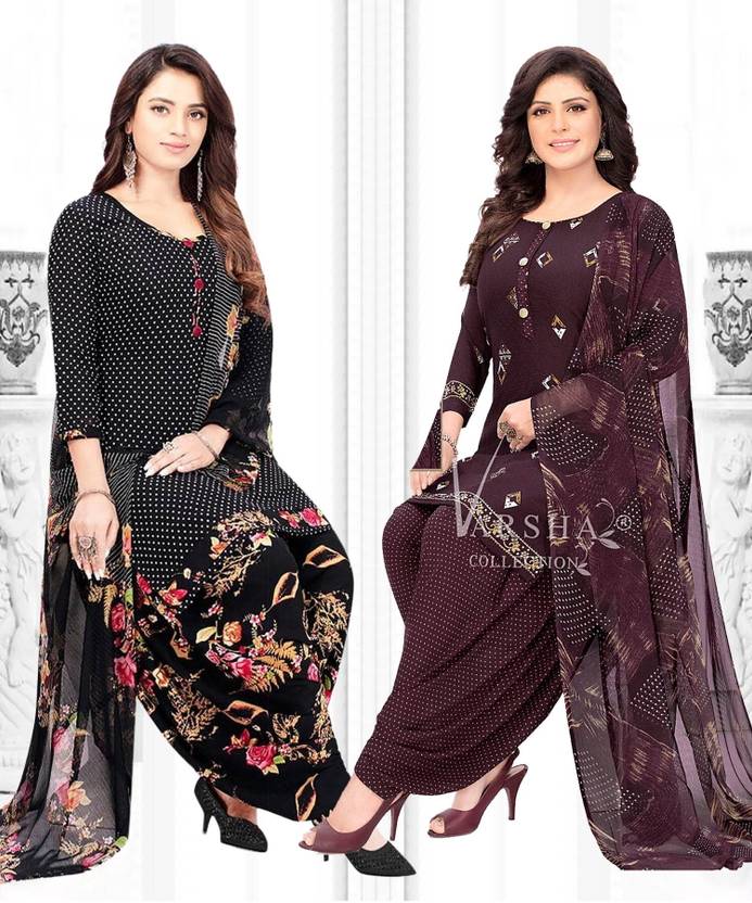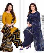 Yashika Womens Crepe Printed Unstiched Dress Material. Add style to your Daily Wear Collection with this Printed Dress material Salwar suit. Two Unstitched Salwar, Two Unstitched Top, Two Dupatta.Top & Bottom Fabric : American Crepe, Dupatta Fabric : Martina You can use it for daily wear purpose it will give you immense comfort and fresh styling look.