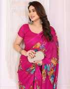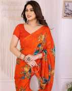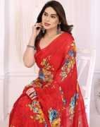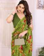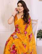 Yashika Elegant Georgette Floral Print Saree for Women featuring Soft Flowing Fabric, Vibrant Floral Patterns, Perfect for Festive Occasions, Parties, Weddings, and Graceful Everyday Wear.