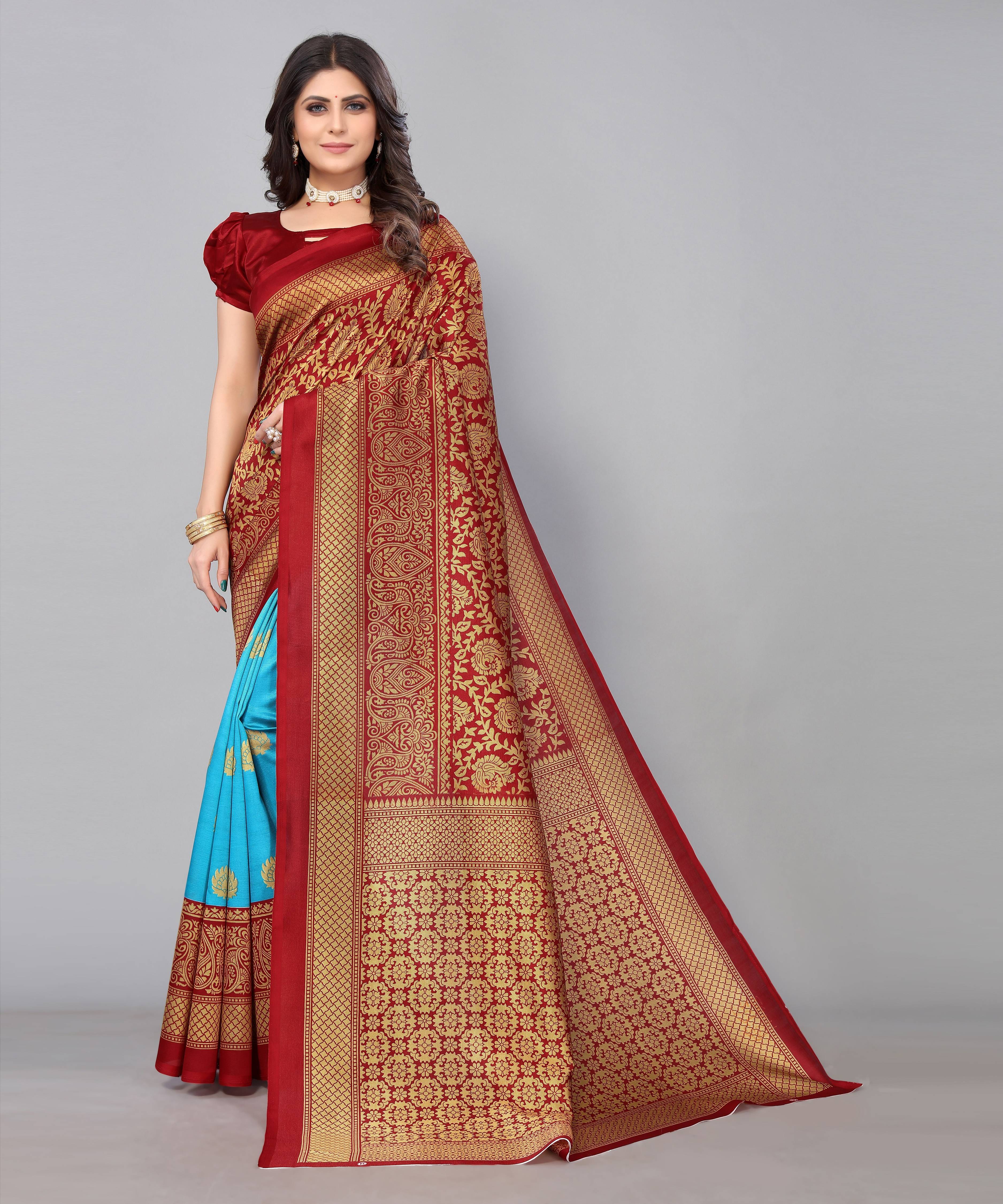 Our first priority is our customers' satisfaction, hence we bring to you this collection of art silk fabric sarees at extremely affordable prices. Which is very beautiful and you can wear it in wedding wear, party wear also. The kalamkari work done in these sarees looks very beautiful.