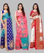 Yashika brings to you this saree which is made from Art Silk fabric and is available in attractive colours. The saree is a suitable amalgamation of style with the grace that is required from an ethnic wear. You can wear it to casual It is unstitched and can be altered according to your desired style and fit.Pair this saree with a clutch and a pair of fashion sandals or any casual footwear of your choice for a casual look when dressing up for a party. You can also pair it with a pair of earrings and bangles when adorning this outfit for a festive occasion. Yashika Sarees For Women With Blouse.