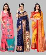 Yashika brings to you this saree which is made from Art Silk fabric and is available in attractive colours. The saree is a suitable amalgamation of style with the grace that is required from an ethnic wear. You can wear it to casual It is unstitched and can be altered according to your desired style and fit.Pair this saree with a clutch and a pair of fashion sandals or any casual footwear of your choice for a casual look when dressing up for a party. You can also pair it with a pair of earrings and bangles when adorning this outfit for a festive occasion. Priyashi Sarees For Women With Blouse.