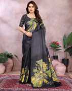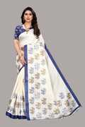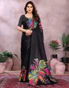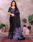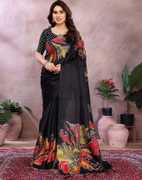 YASHIKA Printed Bollywood Art Silk Saree (White, Black)