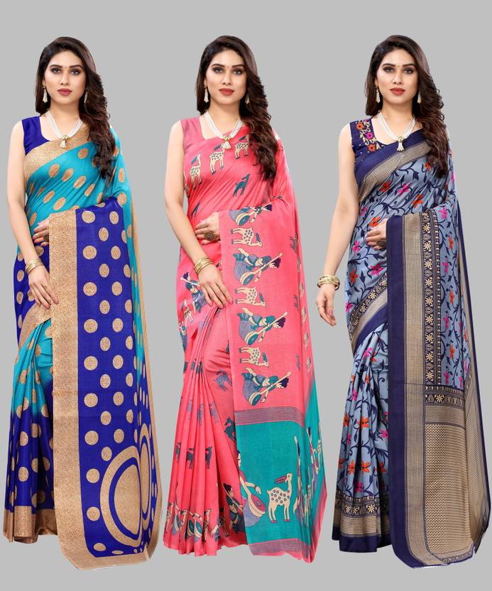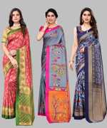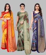 Yashika brings to you this pack of 3 saree which is made from Art Silk fabric and is available in attractive colours. The saree is a suitable amalgamation of style with the grace that is required from an ethnic wear. You can wear it to casual occasions as well as make it a part of your festive wear.The saree comes with a 75 cm separate blouse piece which is of the same shade as that of saree. It is unstitched and can be altered according to your desired style and fit.Pair this saree with a clutch and a pair of fashion sandals or any casual footwear of your choice for a casual look when dressing up for a party. You can also pair it with a pair of earrings and bangles when adorning this outfit for a festive occasion. Yashika Sarees For Women With Blouse. This Is Saree For Women. Saree Length Is 5.25 Mtr Including Blouse Piece. Blouse Is Unstitched Fabric And 0.80 CMeter. This Saree Looks Beautiful In Evening Parties.