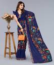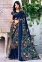 Embellished, Geometric Print, Checkered, Blocked Printed Bollywood Chiffon, Brasso Saree (Blue)