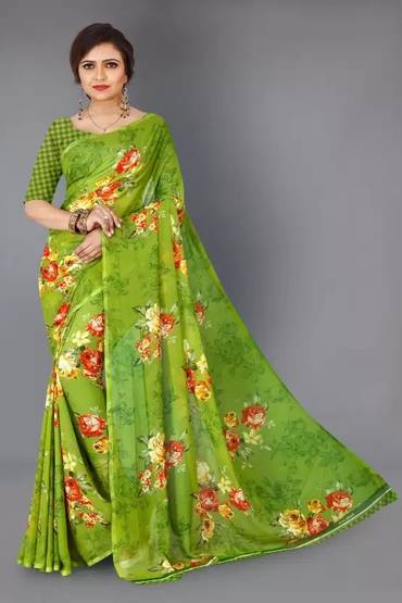 Priyashi Floral Print Daily Wear Georgette Saree (Green)