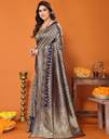 YASHIKA Printed Kanjivaram Silk Blend Saree (Blue)