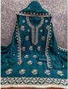 This elegant dress material, beautifully detailed with intricate floral zari embroidery and shimmering sequins for a timeless and graceful look. Crafted from luxurious vichitra silk, the top offers a soft, lightweight, and breathable texture that drapes effortlessly for all-day comfort. The matching vichitra silk dupatta features delicate floral embroidery, adding a refined finishing touch to the ensemble. Paired with smooth Santoon fabric for the bottom and inner lining, this dress material ensures a flattering fit and ease of movement. Ideal for festive events, cultural gatherings, office wear, and family functions, this outfit blends traditional artistry with contemporary style.