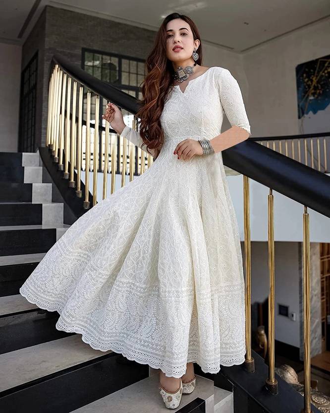 This branded top selling Chickankari Cotton Anarkali Kurti from Yashika brand is suitable for all ocassions. This ethnic outfit will look trendy as casual party wear, festive wear and also on religious ceremonies and weddings. It also gives a formal look perfect for office wear. It gives a great feel as it is made of Chikankari Cotton fabric. It can be worn with a pair of contrast/ matching pants, leggings, palazzos, sharara, gharara, skirt and also jeans/ denim. It has got the classic look which makes it a best seller. Both women and young girls can wear it to look stylish for travel and outings with friends also.