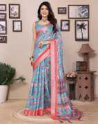 Upgrade your ethnic collection with the Yashika Digital Print Saree, crafted from a luxurious cotton silk blend for a lightweight yet elegant feel. Featuring an intricate digital print, a shimmering silver weaving border, and delicate tassels, this saree is perfect for festive occasions, casual gatherings, and parties. The blend of contemporary design with traditional charm ensures effortless style and versatility. Easy to drape and maintain, it’s a must-have for any wardrobe.