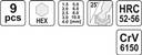YATO YT-0505 High Quality CrV 6150 Chrome Vanadium steel with Hardness HRC 52-55 Hex Allen Key with Ball Allen Key Set