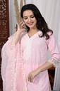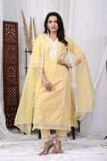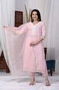 Embroidered Work Pure Cotton Kurta with Trousers & Organza Dupatta